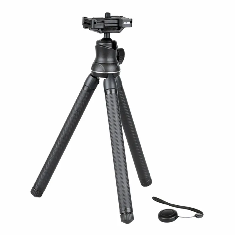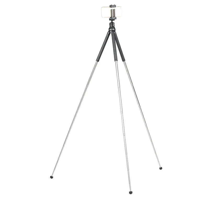 ●カメラ、スマホ、アクションカメラと3通りの機材を取り付けでき、素早く伸ばせる8段三脚。