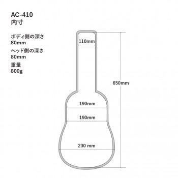 サイズ全長:650mm、ネック幅:110mm、ボディ上部幅:190mm、ボディくびれ部幅:190mm、ボディ下部幅:230mm、ボディ側の深さ:80mm、ヘッド側の深さ:80mm