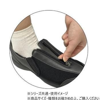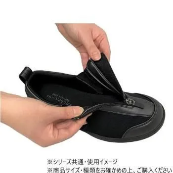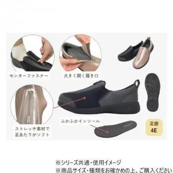 脱ぎ履きしやすいセンターファスナー式です。履き口サイドにゴム付きで、フィット感良く履けます。ストレッチ素材使用でやわらかな履き心地。外反母趾の方にもおすすめになっております。クッション性に優れたふかふかインソールを装備。軽く屈曲性に優れた靴底。