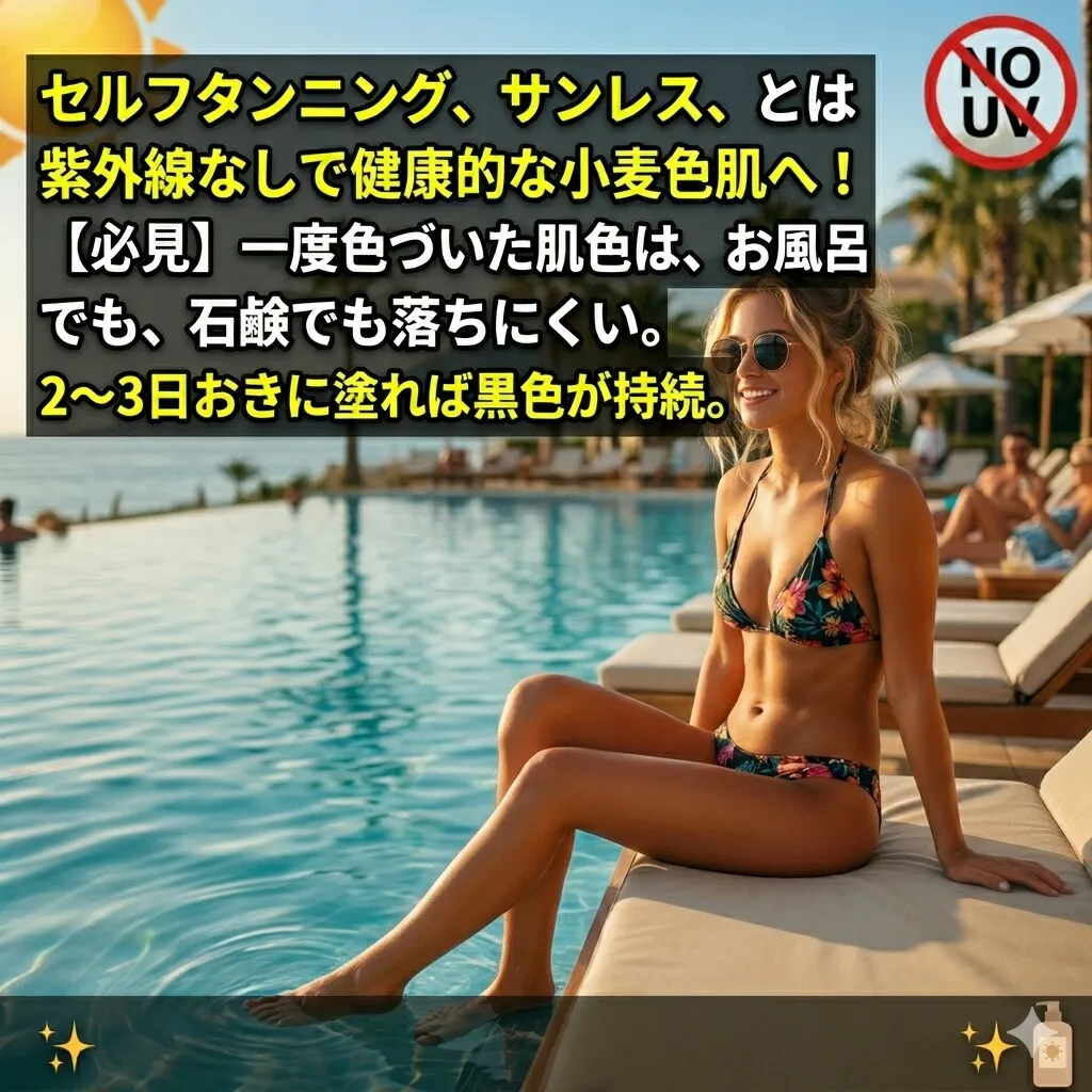 セルフタンニング、サンレス、とは紫外線を浴びなくても日焼けが可能な便利なローションです。