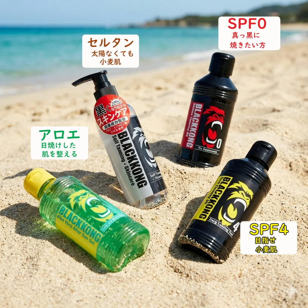 「ブラックコング」は、潤いを守りながら健康的で美しい深みのある日焼けを叶えるサンケアブランド。