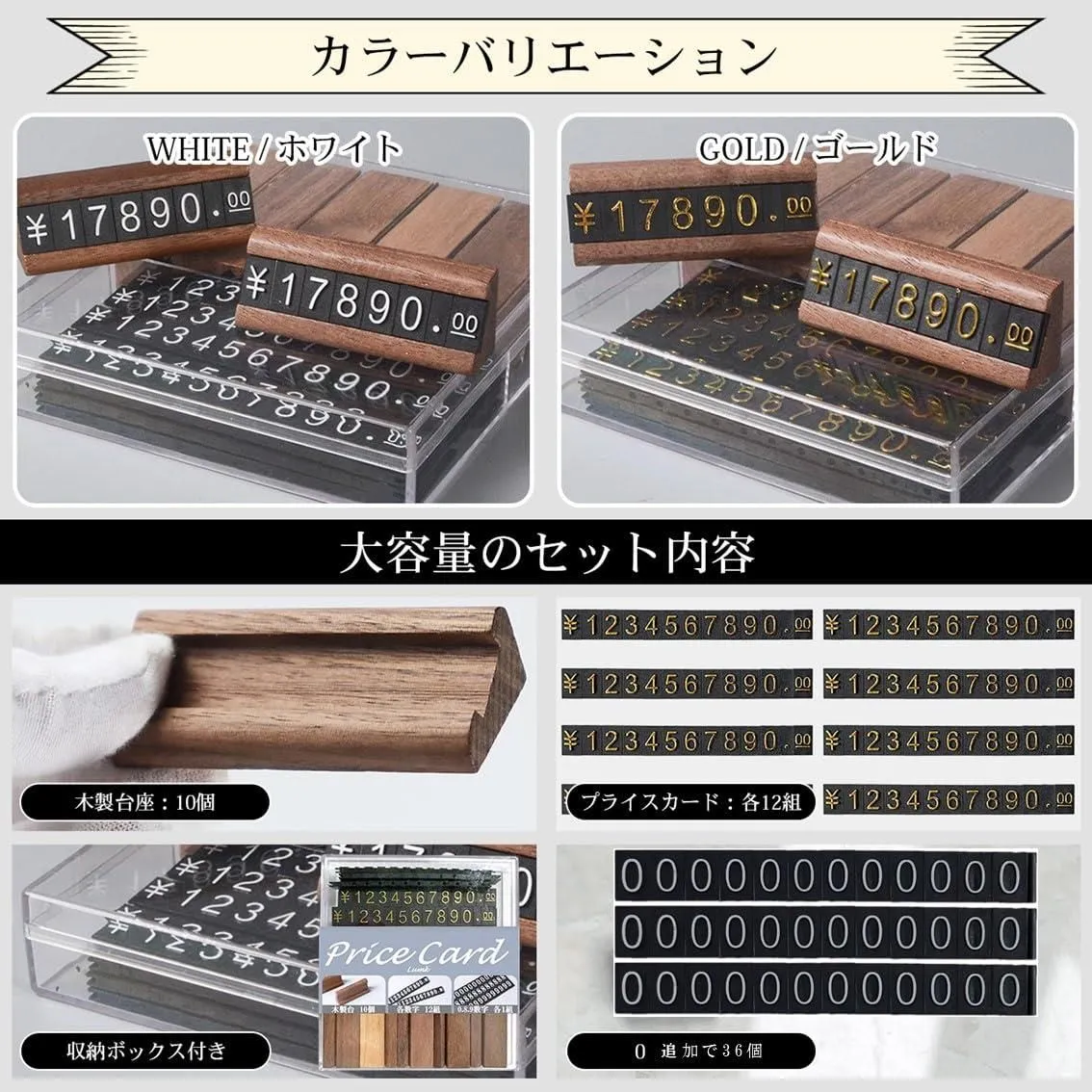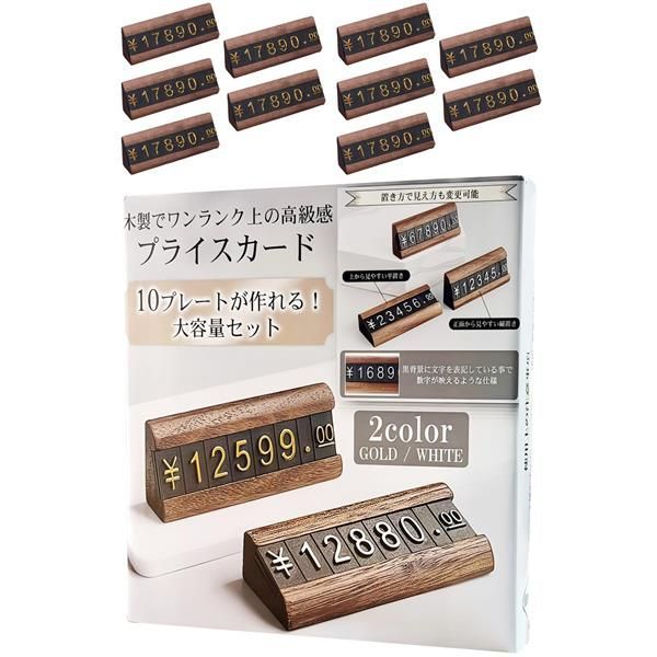 【10個 箱付き】木製 プライスカード 値札建て おしゃれ プライス台 セット 10個フレーム 20枚プライス数字プレート 値札 キューブ 価格表示 プライスキューブ ディスプレイ (GOLD, 6cm)