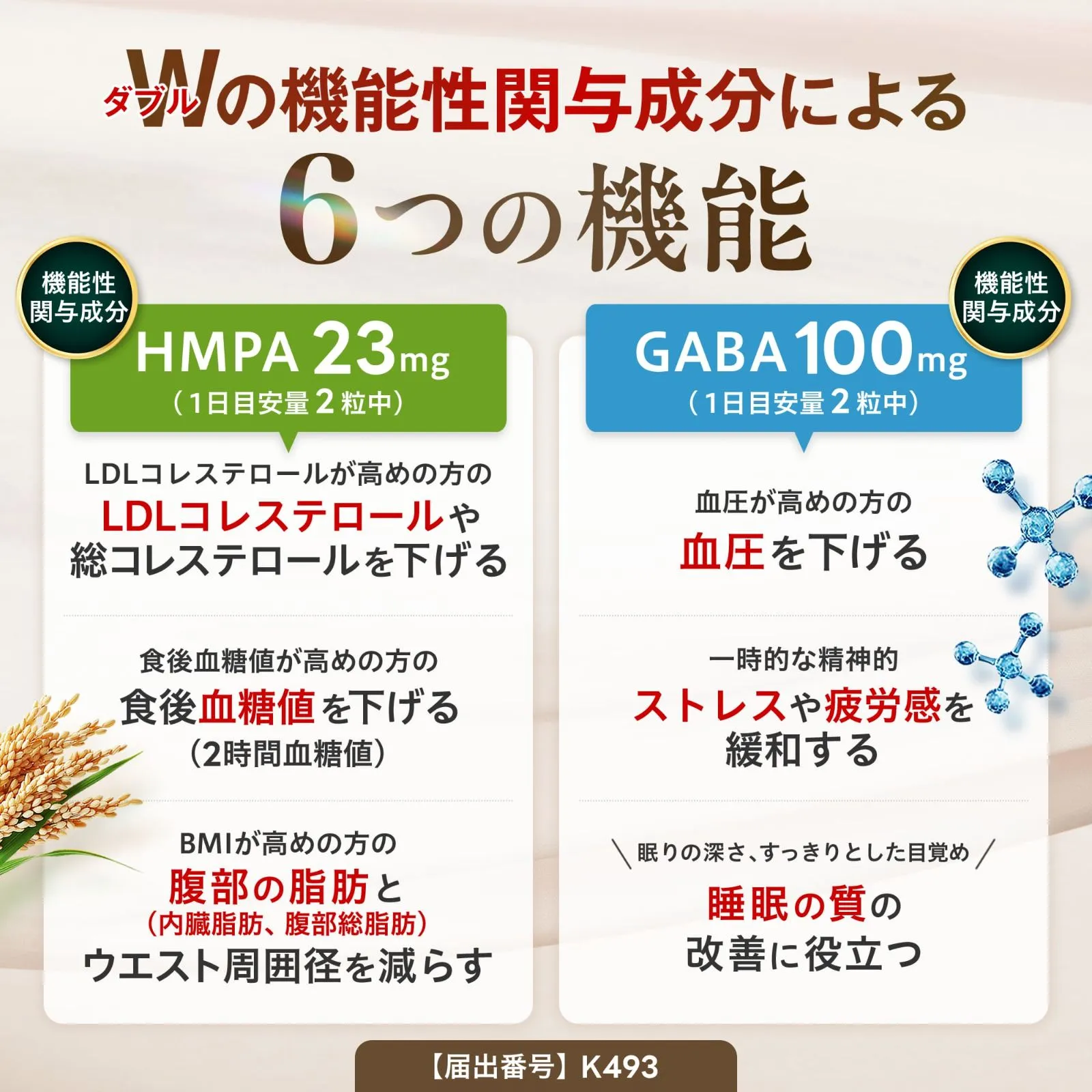 HMPAとGABA ダブルの機能性関与成分でLDL(悪玉)コレステロール&血糖値&血圧をトリプルサポート!