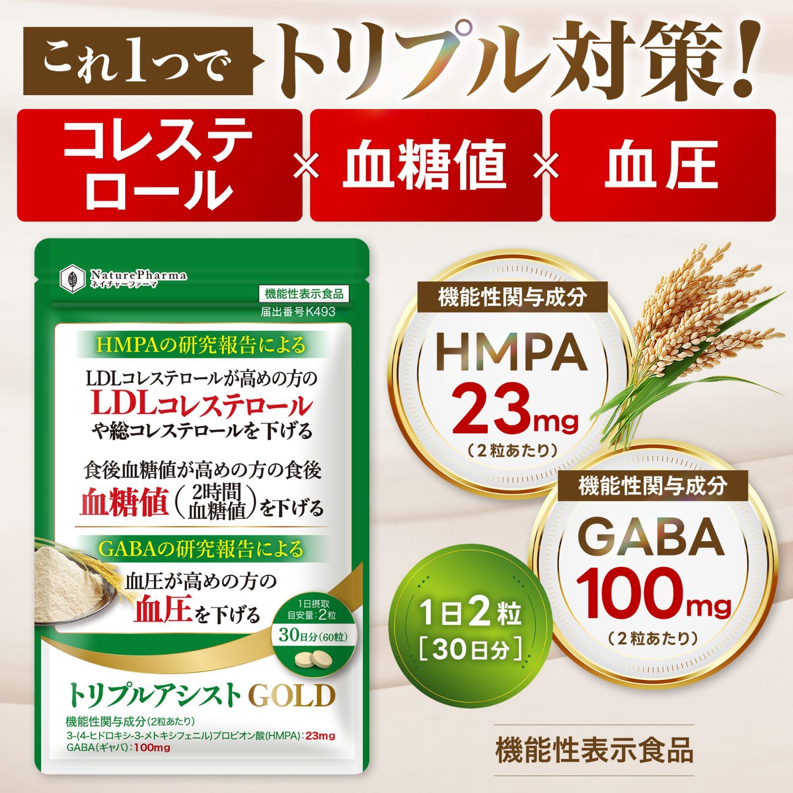 HMPAとGABA ダブルの機能性関与成分でLDL(悪玉)コレステロール&血糖値&血圧をトリプルサポート!