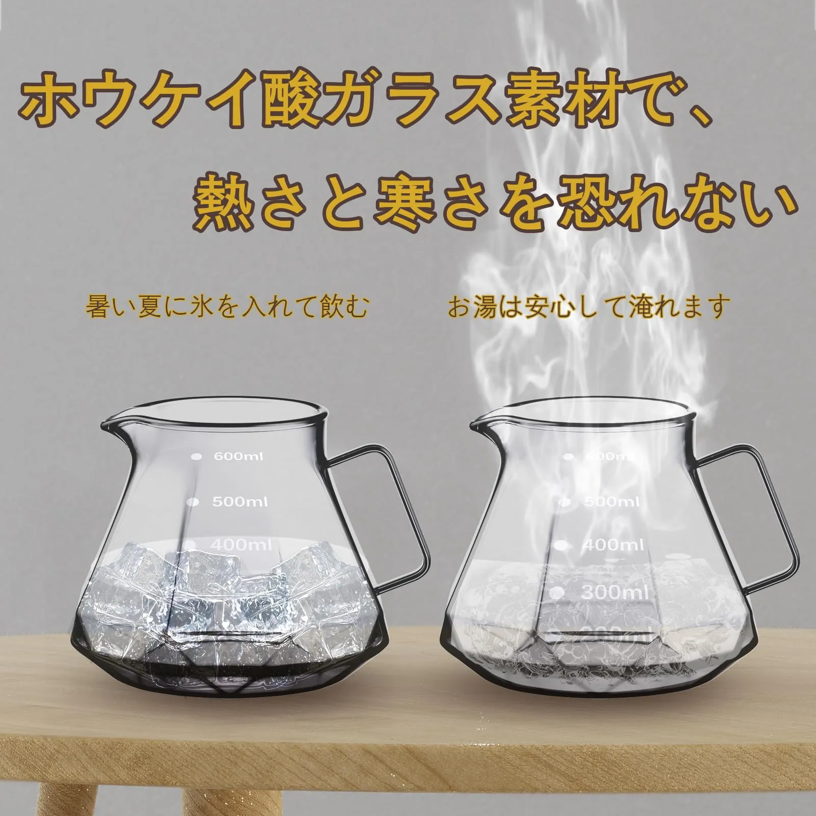 【高品質】この コーヒー ドリップ 器具 の本体は、耐久性と信頼性の高い厚手の高ホウケイ酸ガラスで作られています。 ガラス製のコーヒーカップは熱に強く、傷つきにくいです。 手淹れコーヒーの楽しさを体験するのに最適。