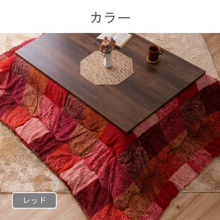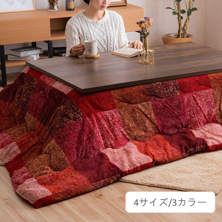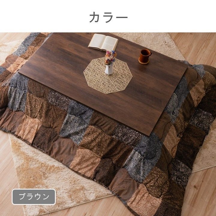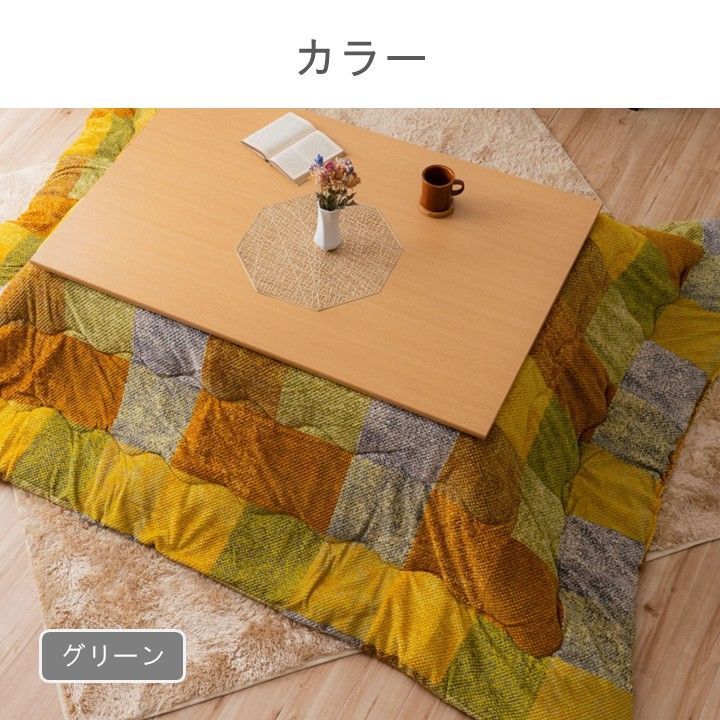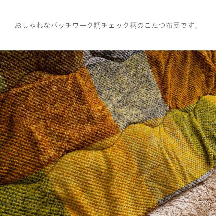 おしゃれなパッチワーク調チェック柄のこたつ布団です。ズレにくいように、紐がついています。