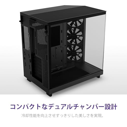 ブラックカラーモデルはスモーク強化ガラスをフロントと左サイドに採用、遮るものなくPCケース内部を美しく映し出します。デュアルチャンバー構造により、電源はマザーボード裏面の空間に設置することで配線をスッキリ最小限にすることができます。