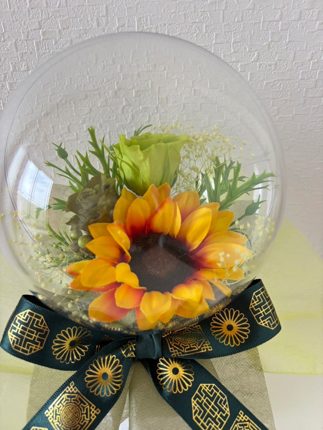 中のお花はアーティフィシャルフラワーとプリザーブドフラワーを使用しています。