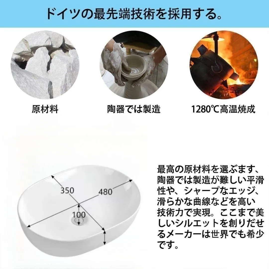 洗面台の上に設置するタイプの洗面ボールです。洗面ボールの形をそのまま認識できるので、デザイン性の高いものを置くことができます。社洗面ボウルは傷や汚れのつきにくい陶器製ボウルを採用します。