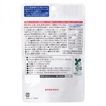 栄養成分(2粒あたり)エネルギー:8.8kcal、たんぱく質:0.27g、脂質:0.83g、炭水化物:0.06g、食塩相当量:0~0.008g、ビタミンD:2.6μg(47%)/DHA:350mg