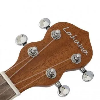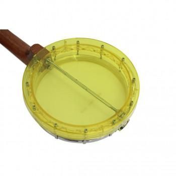 ネックは重量バランスや強度、振動の伝達を考えてマホガニーを使用しています。ボディはプラスティックですがバンジョーウクレレの構造を持つためサウンド面も充実してふくよかに鳴ってくれます。見た目の華やかさと演奏性や良質なサウンドを兼ね備えたバンジョーウクレレになっています。標準でついているヘッドはフロステッドタイプです。