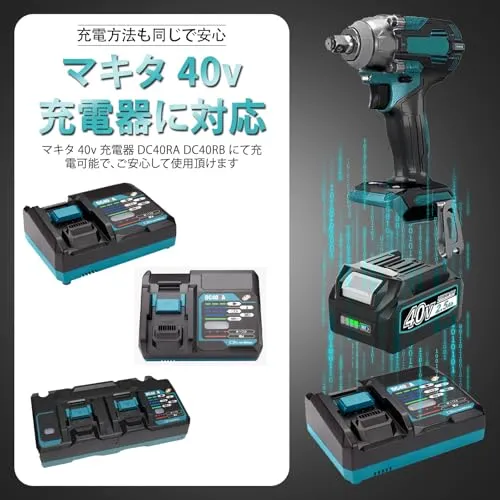【完全の互換性】純正品のマキタ 40Vmax バッテリー: BL4025 BL4040 BL4040F BL4050 BL4050F BL4060 B4080 B4080Fなどに互換可能です。マキタ 40v 充電器:DC40RA DC40RB DC40RCなどに充電できます、充電方法も同じです。ご安心して使用頂けます。