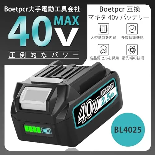 Boetpcr 互換 マキタ 40v バッテリー BL4025 2500mAh 2個付き ハイパワー マキタ 40Vmax バッテリー BL4040 BL4050 BL4080に互換可能 LEDランプ残量表示 大型基板搭載 多数保護 高耐久性 PSE CE認証取得済み