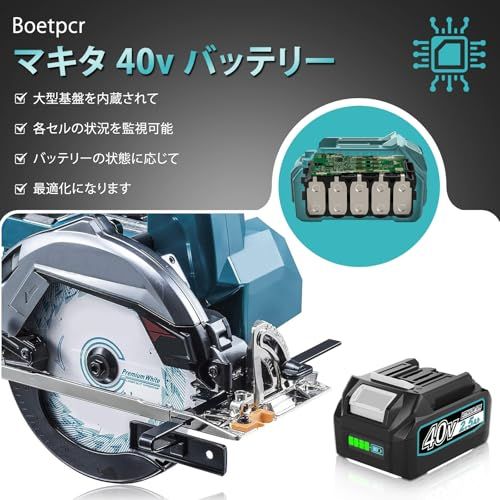 【大型BMS基板&多数保護機能】マキタ 40Vmax バッテリーは内部に大型BMS基板に過電流保護、過充電防止、過放電防止、短絡保護、温度保護の回路保護制御が設置されており、個別のセールを監視回路?線はちゃんと入って、商品性能と耐久性が純正品と遜色がないです。