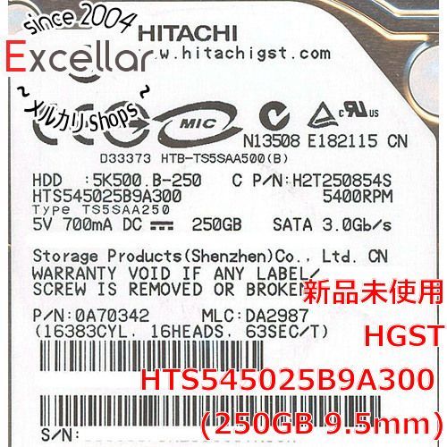HITACHI ノート用HDD 2.5inch★HTS545025B9A300★250GB★未開封