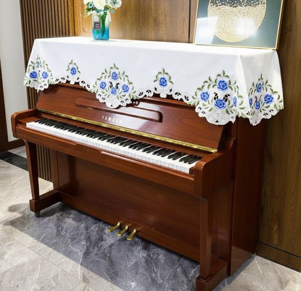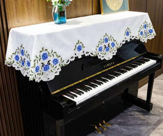 清潔感のあるホワイト地に青い薔薇の刺繍がアクセント、クラシックな雰囲気をもたらします。 裾はスカラップ状に波打ったおり、優雅な印象を与えます。 埃や傷から守るつつ、インテリアとしても楽しめます。 用途: アップライトピアノ、電子ピアノカバー、マルチカバー サイズ:80X210cm 素材:ポリエステル 洗濯: 手洗いで風通しの良い日陰に干しましょう (畳んである折り目は使う前に中温程度でアイロンをかけて使うのをお勧め)