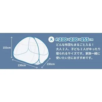 商品名:組立簡単 害虫を通さない ワンタッチ式蚊帳 大 約230×230×155cm 159013420