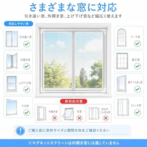 【サイズ調整可能】サイズは120cm180cmで、?き出し窓、大型引き違い窓、 ベランダサッシに最適です。必要に応じて、簡単にカットしてサイズ調整できるため、どんな窓にもぴったりフィットします。自宅の窓に合わせたオーダーメイド設置が可能で、非常に低コストで実現できます。