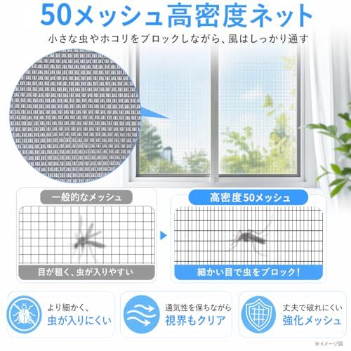 【細かい網目設計】本製品は、20メッシュのネットに各グリッドの真ん中に2本のラインを追加しました。これにより、換気や光の通り道を保ちながら、ほこりや花粉をより効果的に防げるようになります。