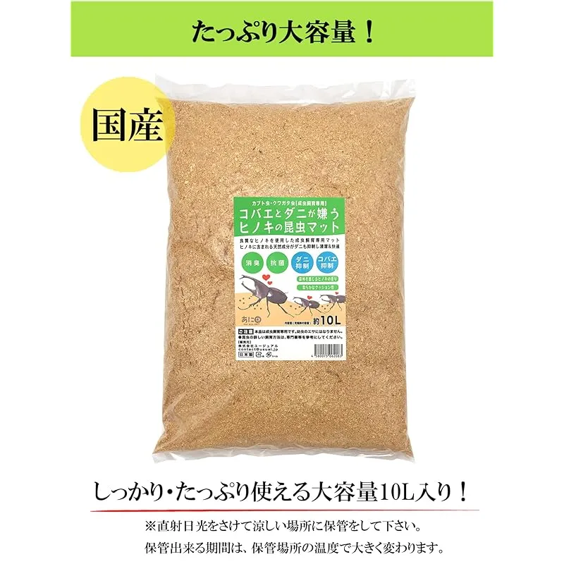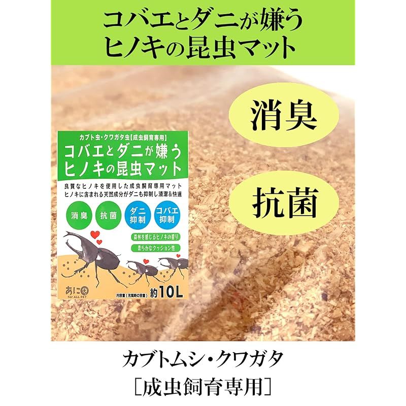 商品名:あに〇 昆虫マット ヒノキ チップ カブトムシ クワガタ 成虫用 10リットル 天然素材100% 消臭 抗菌 床材 おがくず