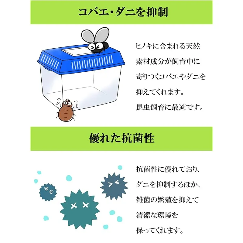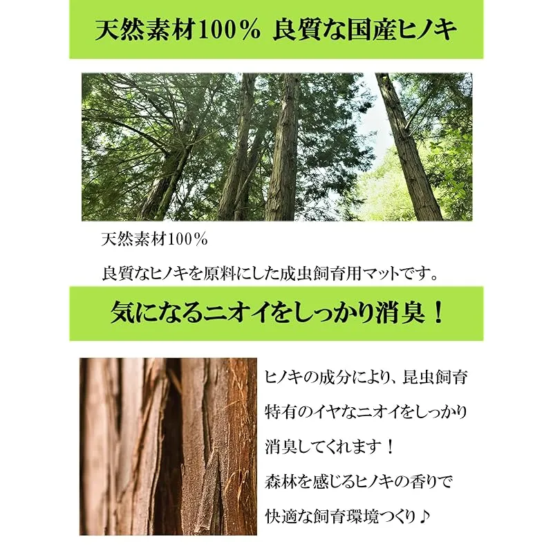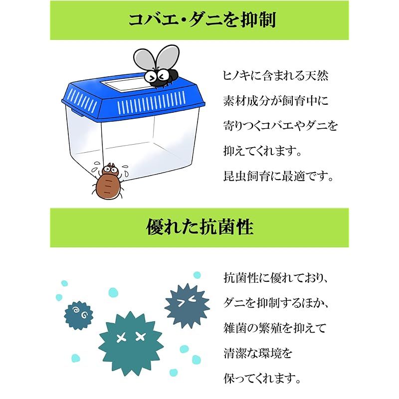 【?気になるにおいを消臭!】昆虫飼育特有の気になるにおいをヒノキの成分がしっかり消臭してくれます。