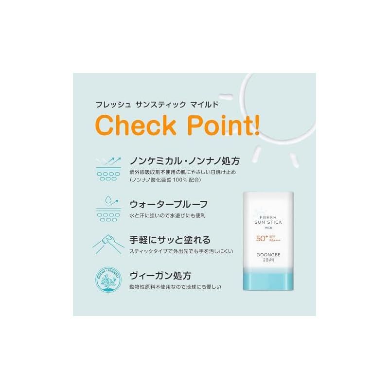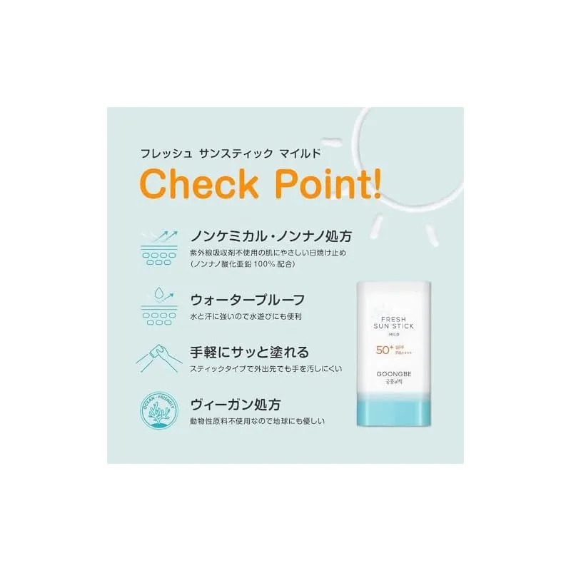 商品名:GOONGBE(グンビー)フレッシュサンスティック マイルド SPF50+ PA++++ 23g 日焼け止め スティック こども 赤ちゃん 大人紫外線対策 日焼け対策 低刺激 敏感肌 UV 韓国スキンケア G50109