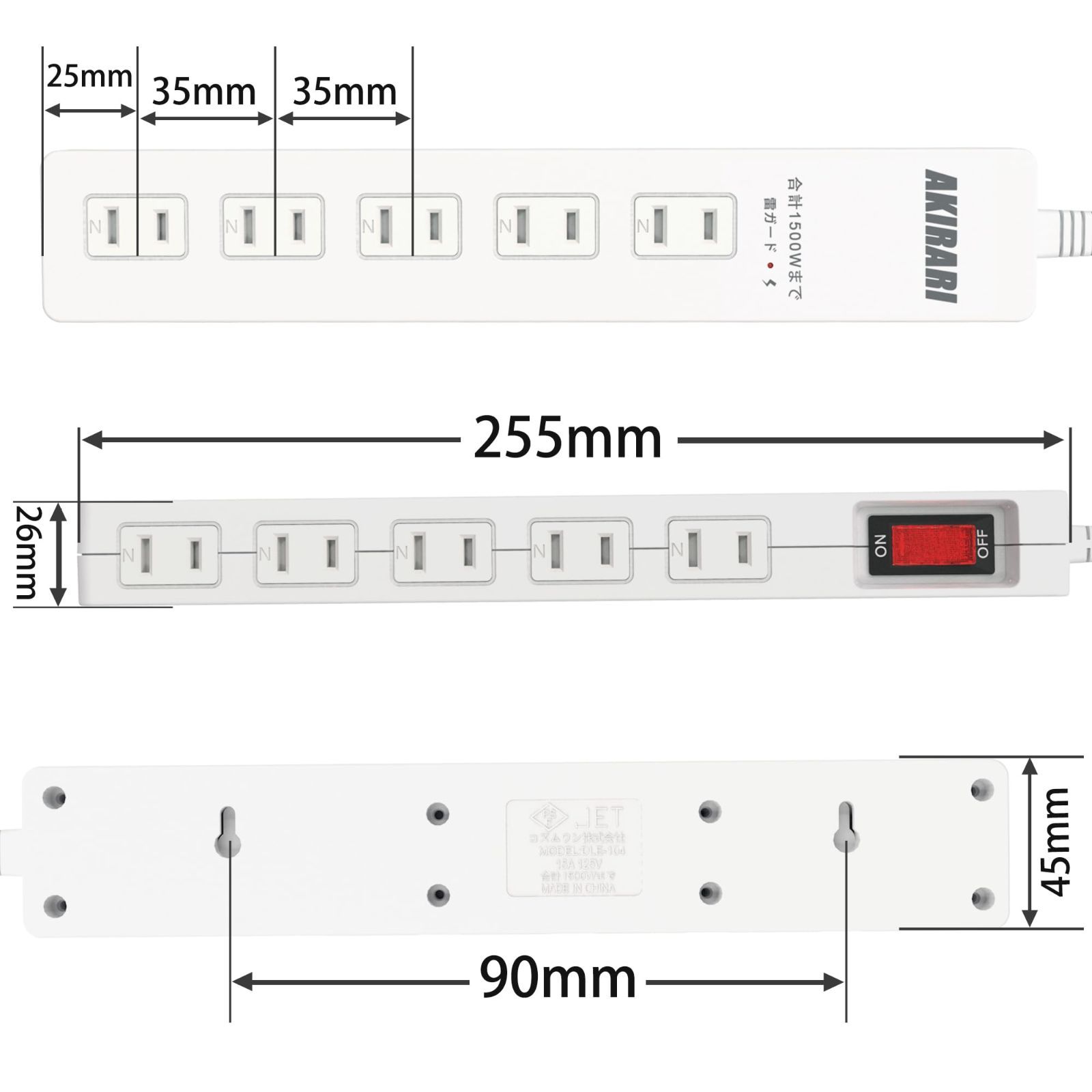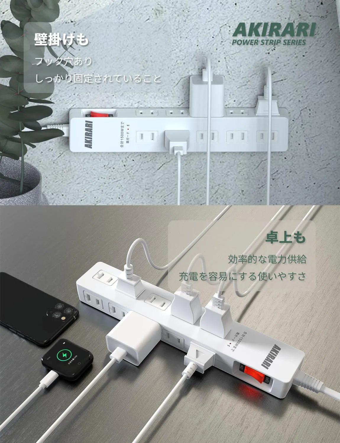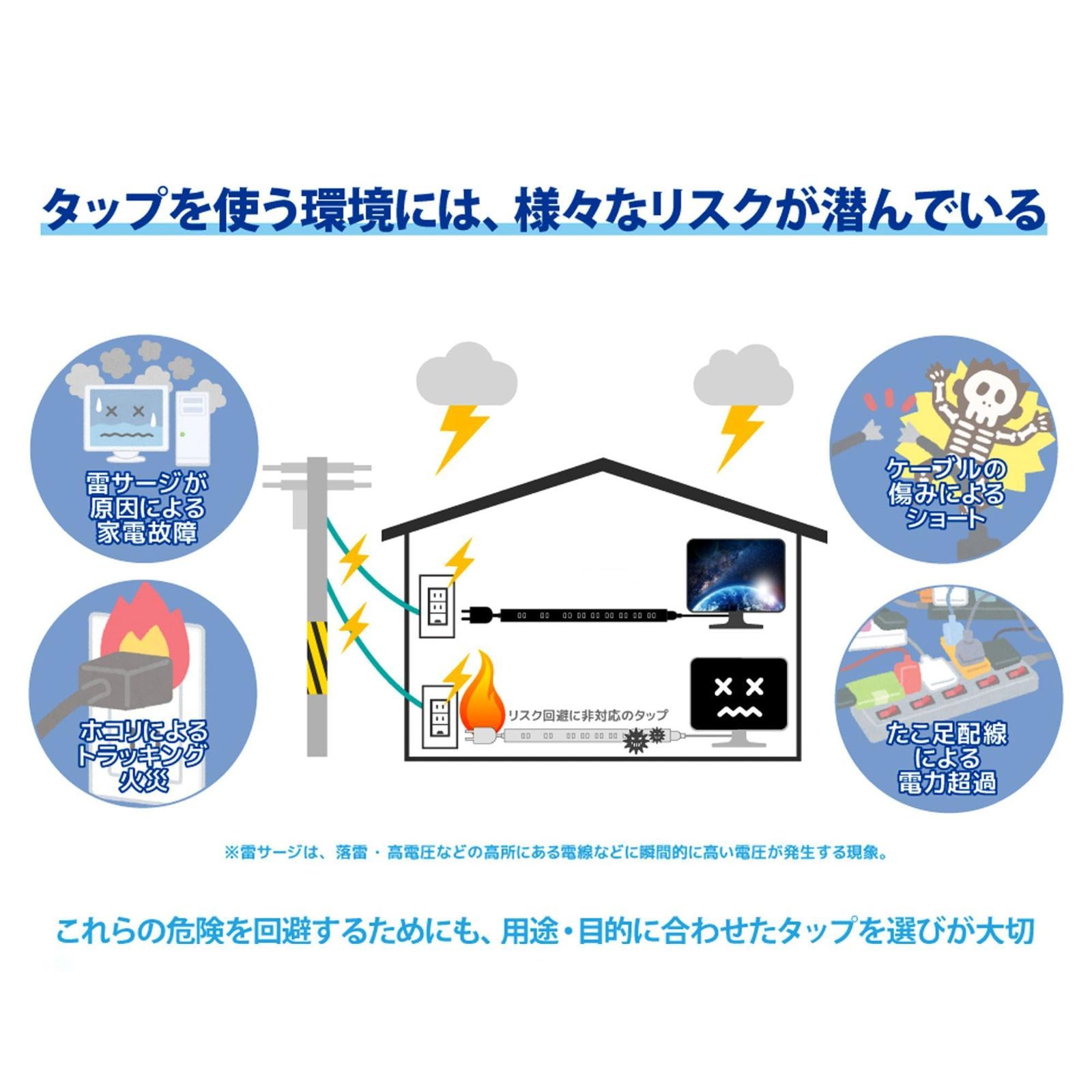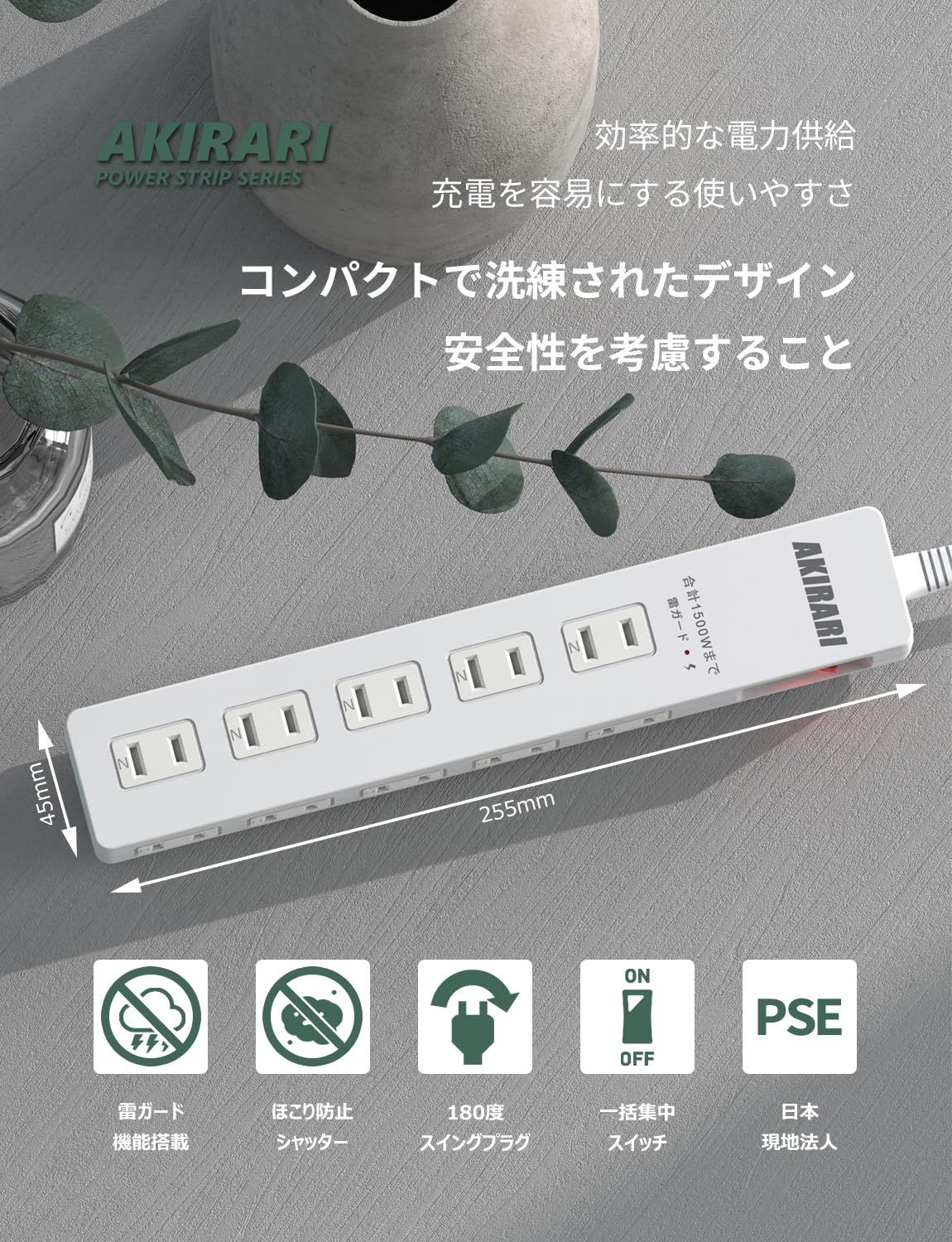 特徴 オン/オフスイッチ サージ保護 トラッキング火災防止 ホコリシャッター 取り付け可能