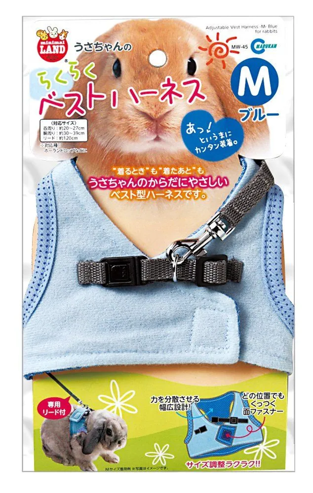 ミニマルランド うさちゃんのらくらくベストハーネス ブルー M サイズ