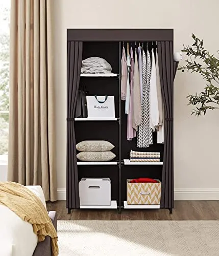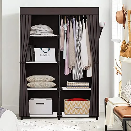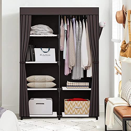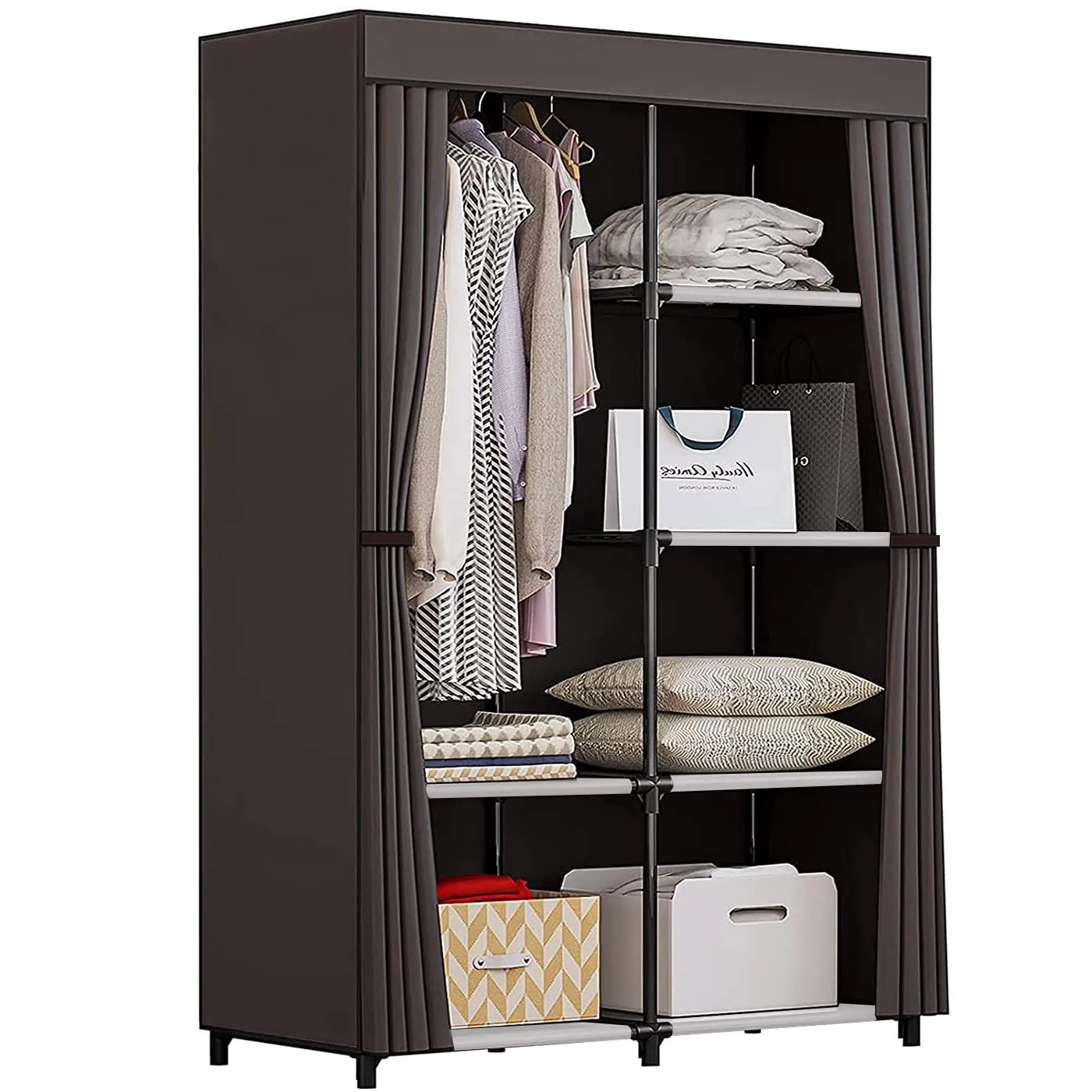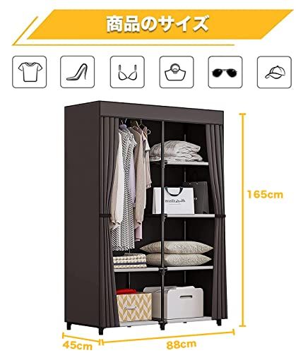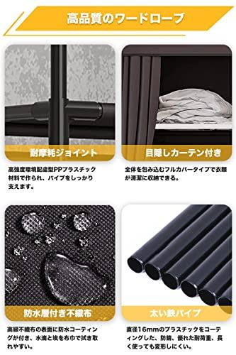 【抜群通気性があるワードローブ カバー付き】豊富な収納スペースがあり、衣類などをまるごと収納出来、カバーで隠せばお部屋がすっきりします。隠しカーテンは不織布なので通気性が良いです。また、カバーをする事でホコリや日焼けから衣類を守ります。