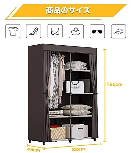 【組み立て簡単、女性一人でもOK】女性の方は一人でも簡単で楽に組み立てできます。説明書付属します、パイプを連結パーツで繋げて、カバーがラックに覆うだけ!組立式収納棚は強固に改良しました。防水の厚や通気性の良い不織布、強化プラスチックの接続口。