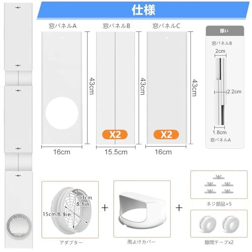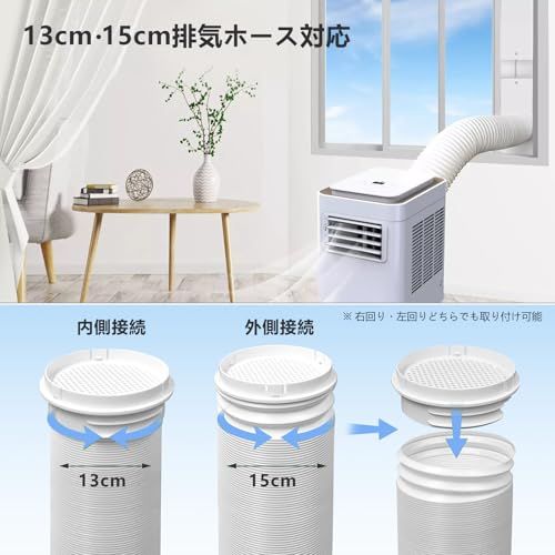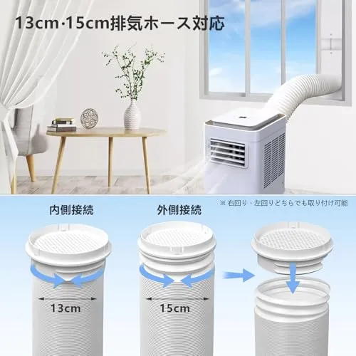 二重径対応:本ダクトパネルは、直径13cmおよび15cmのエアコン排気ホースに対応しており、取り付けが簡単で柔軟性に優れています。多くのポータブルエアコンモデルに適合します。(ご注意:購入前に排気ホースの径をご確認ください。)