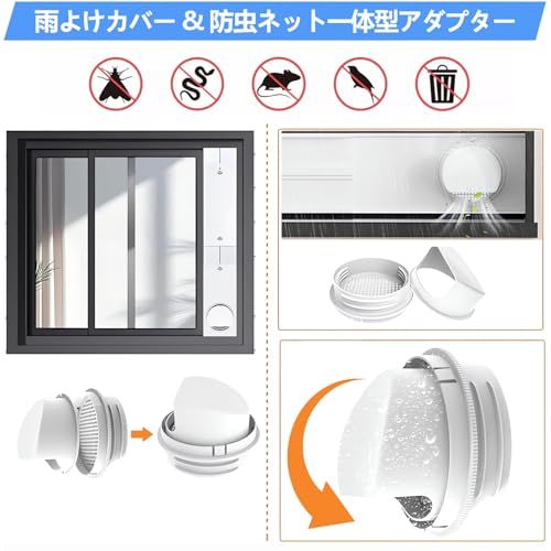 レインカバー付き:雨の日でもエアコンをご使用いただけます! 当社のダクトパネルにはレインカバーが標準付属しています。これにより、排気ホースを通じて雨水が本体内部へ逆流するのを防ぎ、ポータブルエアコンをしっかり保護します。製品の寿命を延ばすだけでなく、安全性の向上にもつながります。