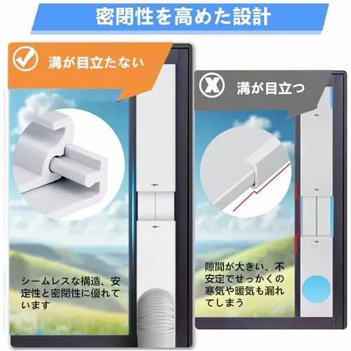 卓越した密閉性能:新設計のダクトパネルが窓枠にぴったり密着し、室内外の空気の出入りをしっかり遮断。冷気を逃さず閉じ込め、エアコンの効率を向上させ、冷却効果を最大限に高めながら、省エネにも貢献します。