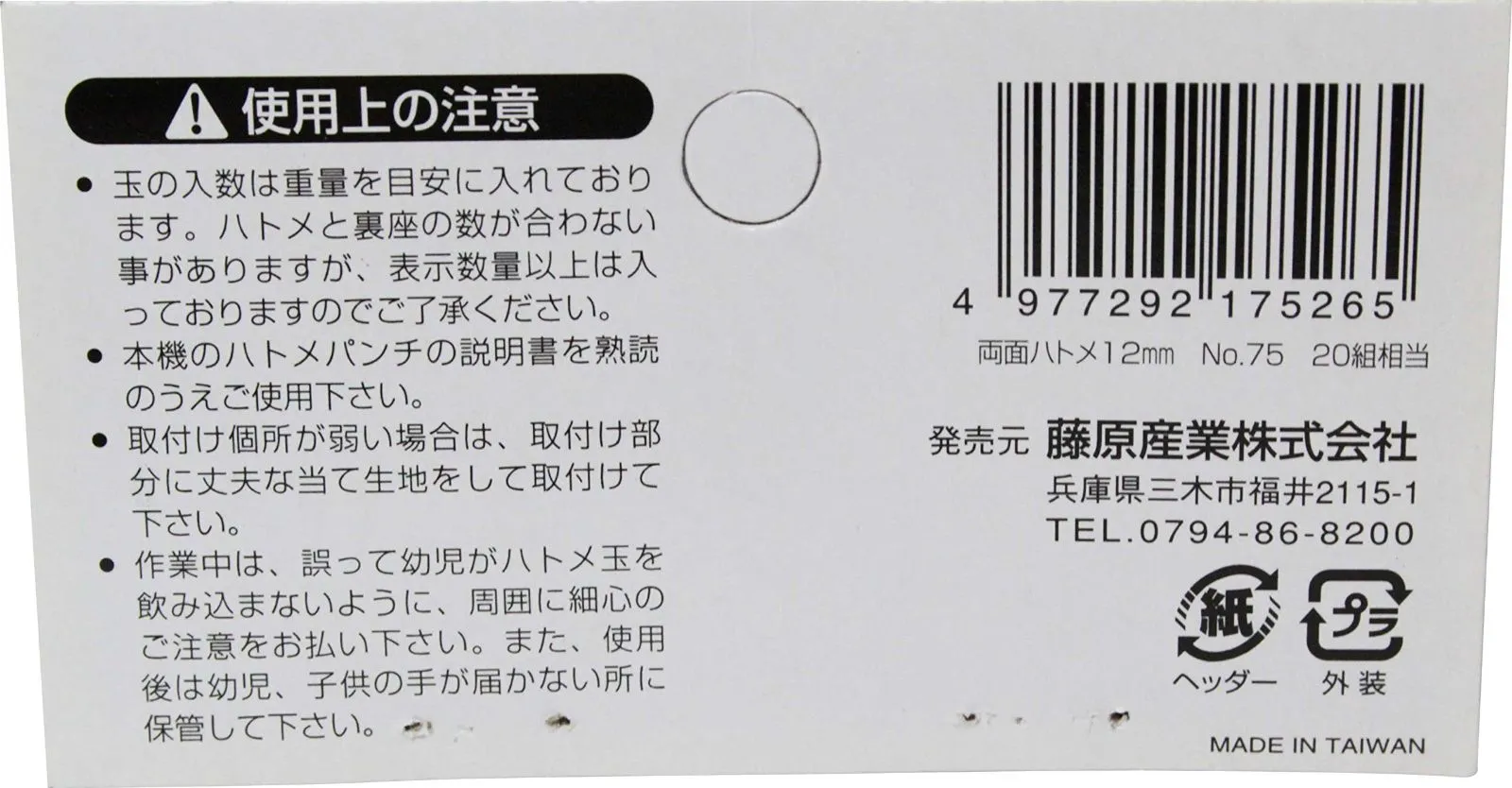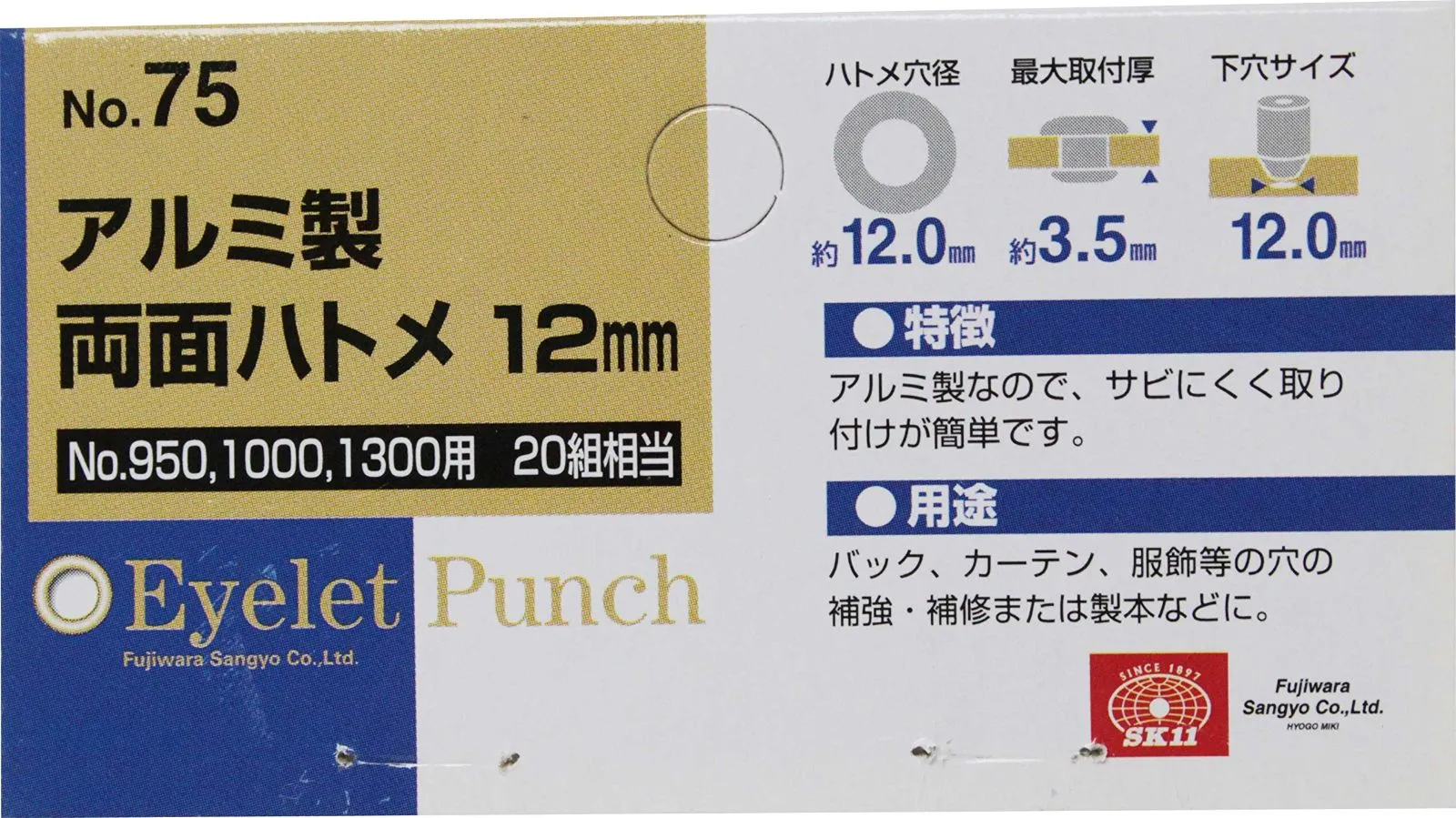 SK11(エスケー11) 両面ハトメパンチ プライヤー型 交換用の玉 20組 12.0mm 本体950,1000,1300用 No.75