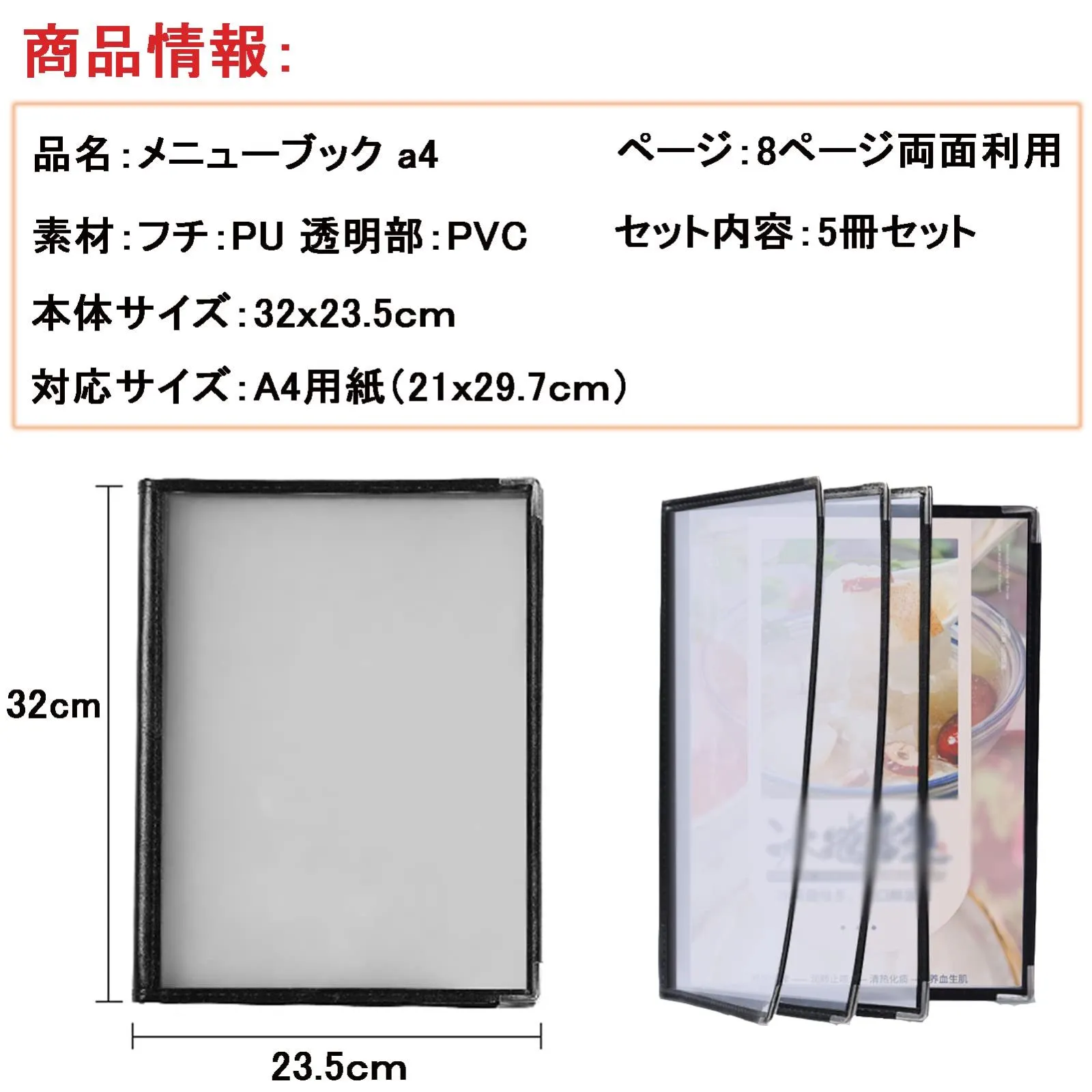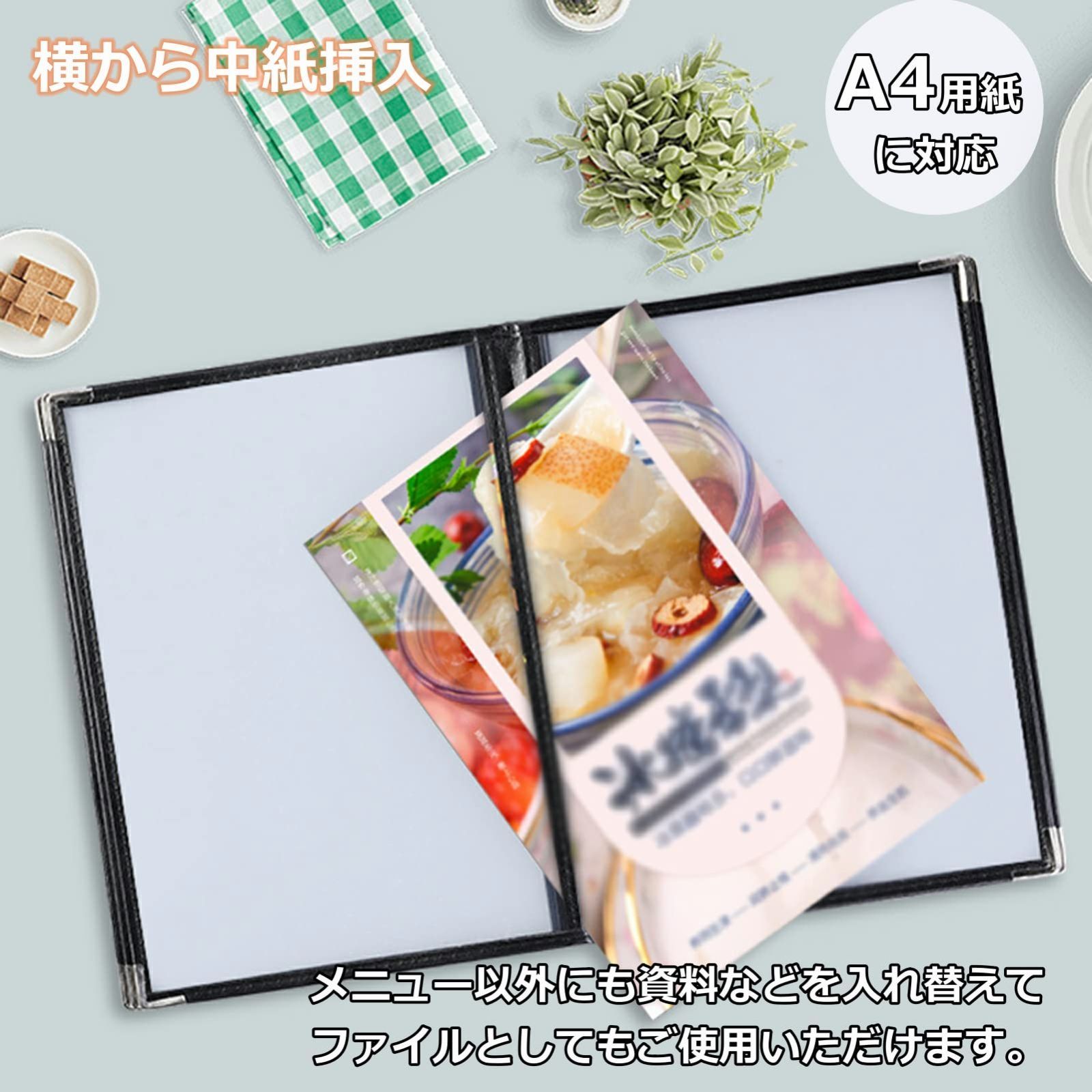 a4 メニューブック メニュー表 a4 5冊セット メニューファイル メニューブック a4 4ページ 両面利用 menu book A4サイズ対応 4ページ 透明 料理写真8枚入り 2026版