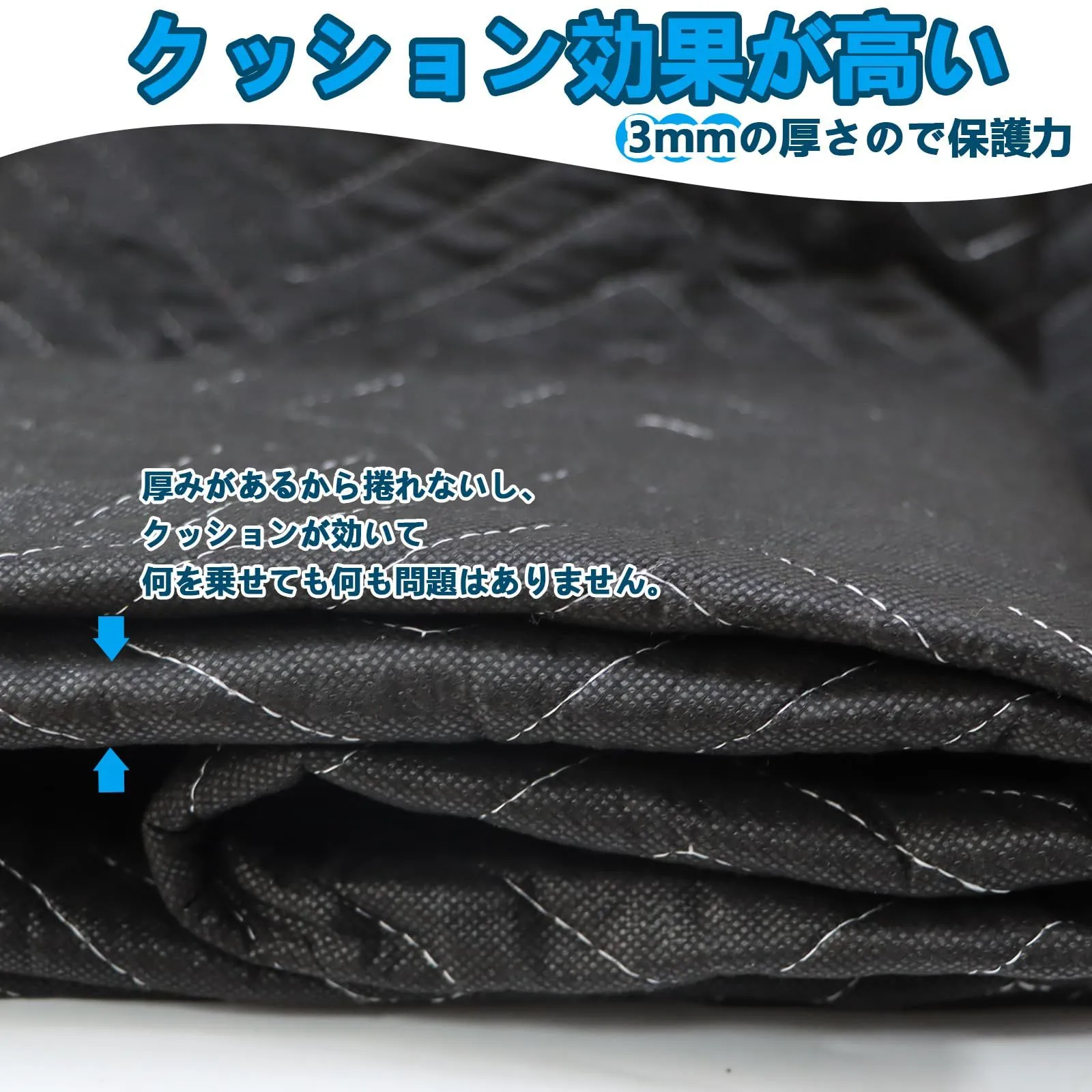 【耐久性のある構造】クッション性に優れた再生綿と耐磨耗性のあるポリエステルを採用しており、ソフトでより耐用です。養生クッションマットの4辺はダブルステッチで、内部はZステッチを採用しており、靱性に優れ、壊れにくい。
