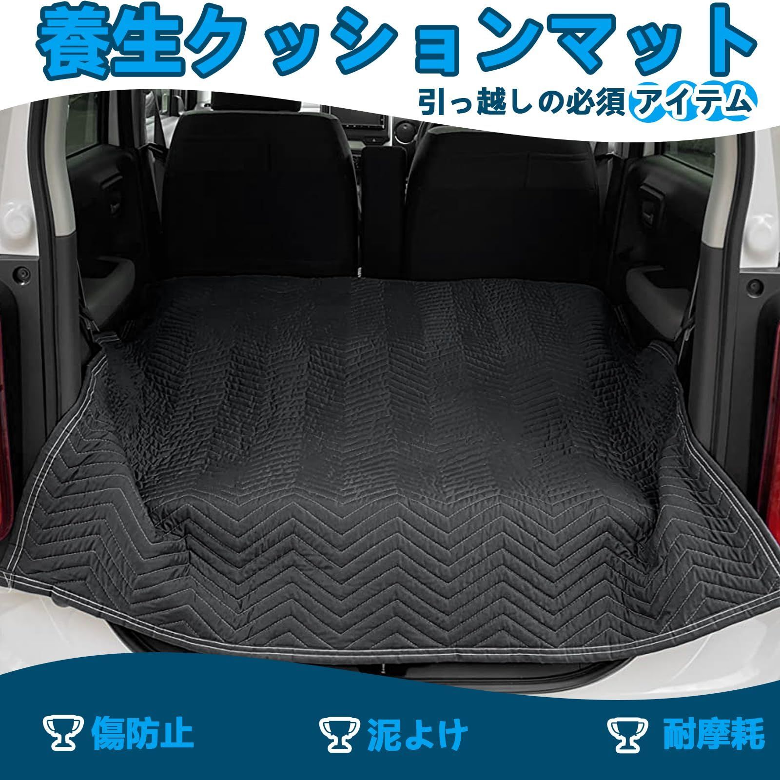 【運搬時の荷物保護】引っ越しのプロのために開発した養生クッションマットです。養生マット1枚あると、梱包や車への出し入れの際に非常に便利です。引っ越し荷物を車で運ぶ時に、車内の傷防止と泥よけ、引っ越し先での荷物運びの養生から大きな役割を果たします。