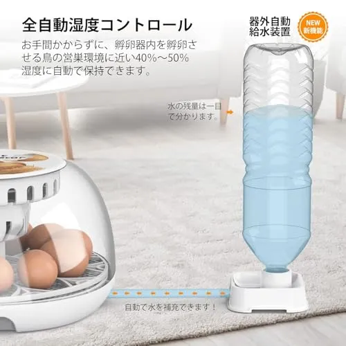 【大容量&多種類な孵化】毎回12個ニワトリサイズの卵を孵化できる大容量な全自動孵卵器です。ニワトリ12個、ウズラ卵、すずめ卵2436個など様々な種卵に対応できます。いろんな種卵の孵卵にチャレンジできます。種卵の大きさによって、可能な孵化の数も違っています。