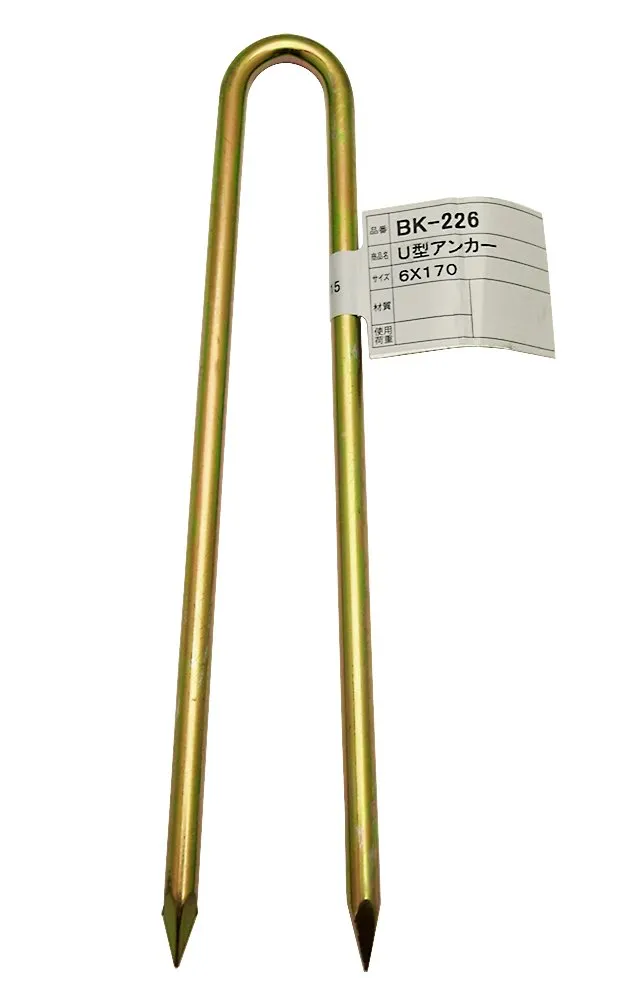 新品 和気産業 U型アンカー ユニクロ 6X170mm 設営 ロープ 地面 固定 BK-226