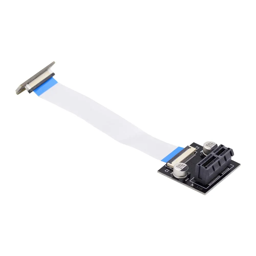 これはPCI-e (PCI Express) 1X スロット リロケート FPC ケーブルです。長さ: 10cm、カスタムエンクロージャや薄型ラックマウントシャーシに特に適しています。