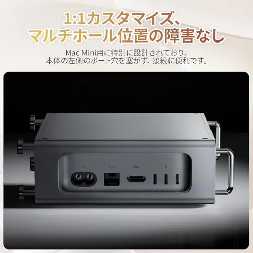 【1:1 精密ポート位置】Mac Mini専用設計により、本体左側の全てのポート孔位置を完全開放。接続作業時のスムーズな配線が実現されます。高摩擦力シリコングリップパッドを搭載し、卓上での安定した設置をサポート。振動やスライド防止効果により、長時間使用でも安心です。アルミニウム製エルゴノミックグリップを標準装備。優れた握り心地と適度な重量バランスで、移動時の操作性を向上させます。