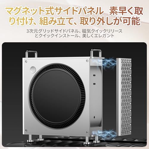 【簡単な取り付け】ネジ止めによる取り付け方法で、一歩で完了。隙間なく締め付けることで、より強固な固定が可能です。サイドパネルは 3D 立体グリッド構造を採用し、磁石式の着脱機構により、迅速に吸着し、瞬時に取り付け・取り外しができます。一方の側の背面には透孔を設けたエアベントデザインを採用し、効率的な放熱性能を発揮します。もう一方の側のパネルは完全に密閉されており、自由に DIY が可能です。個性的なシールを貼り付けることで、様々なスタイルに変えることができます。