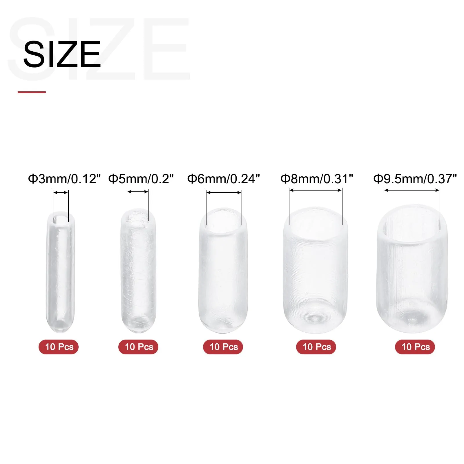 【1/8 3/16 1/4 5/16 3/8 内径】 1/8 3/16 1/4 5/16 3/8 内径の透明ビニールラウンドエンドキャップカバー