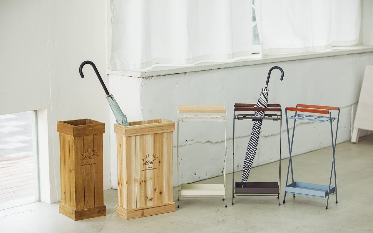 ハンドルのウッドがナチュラルな可愛らしい傘立てです