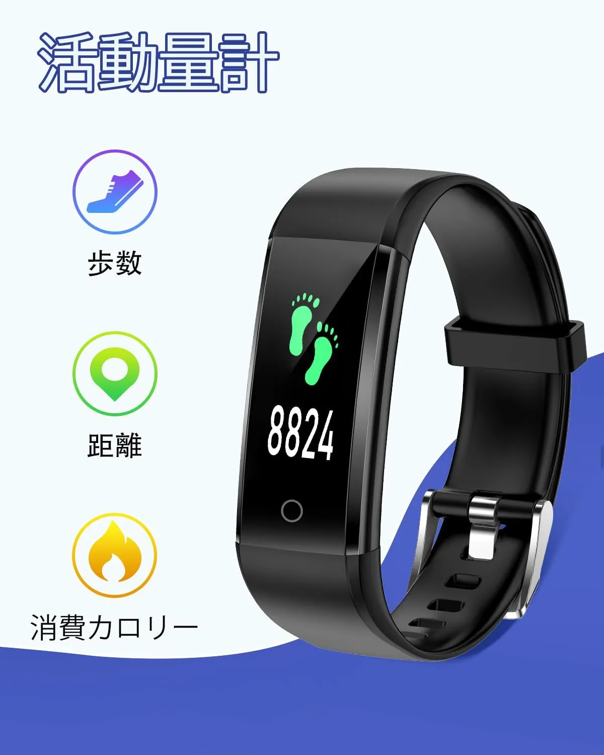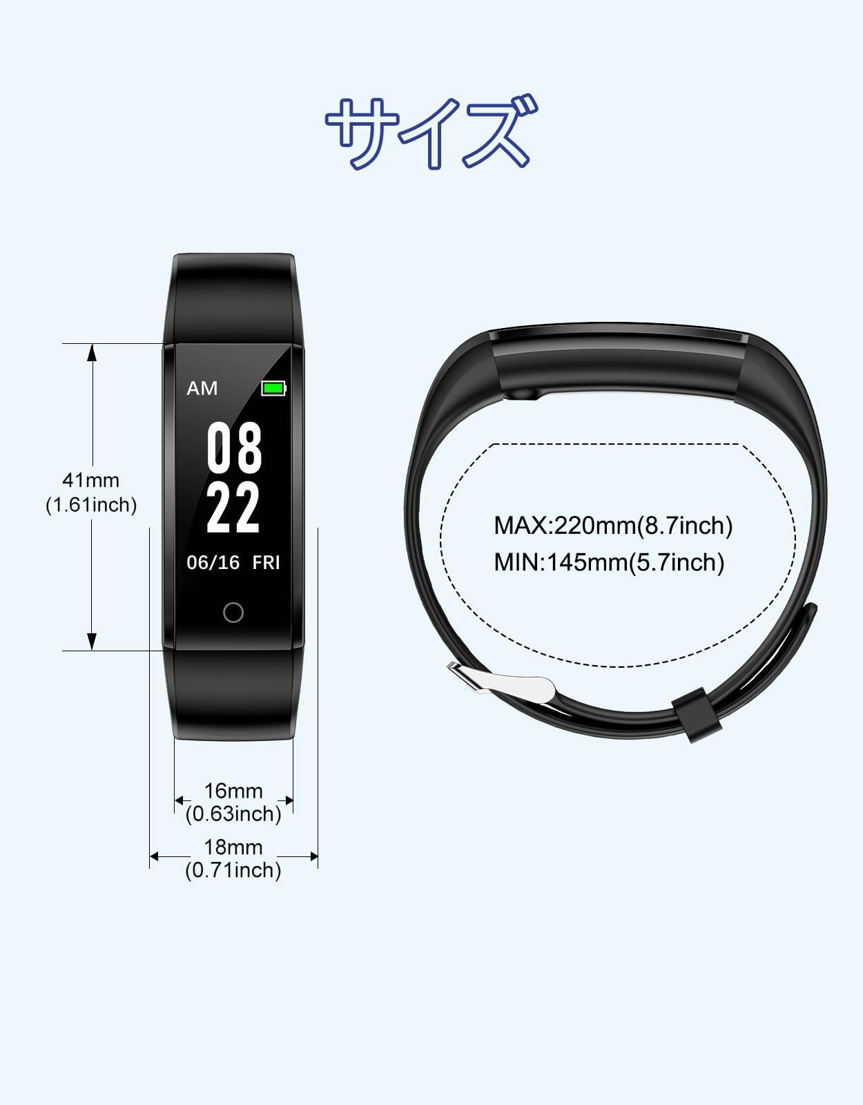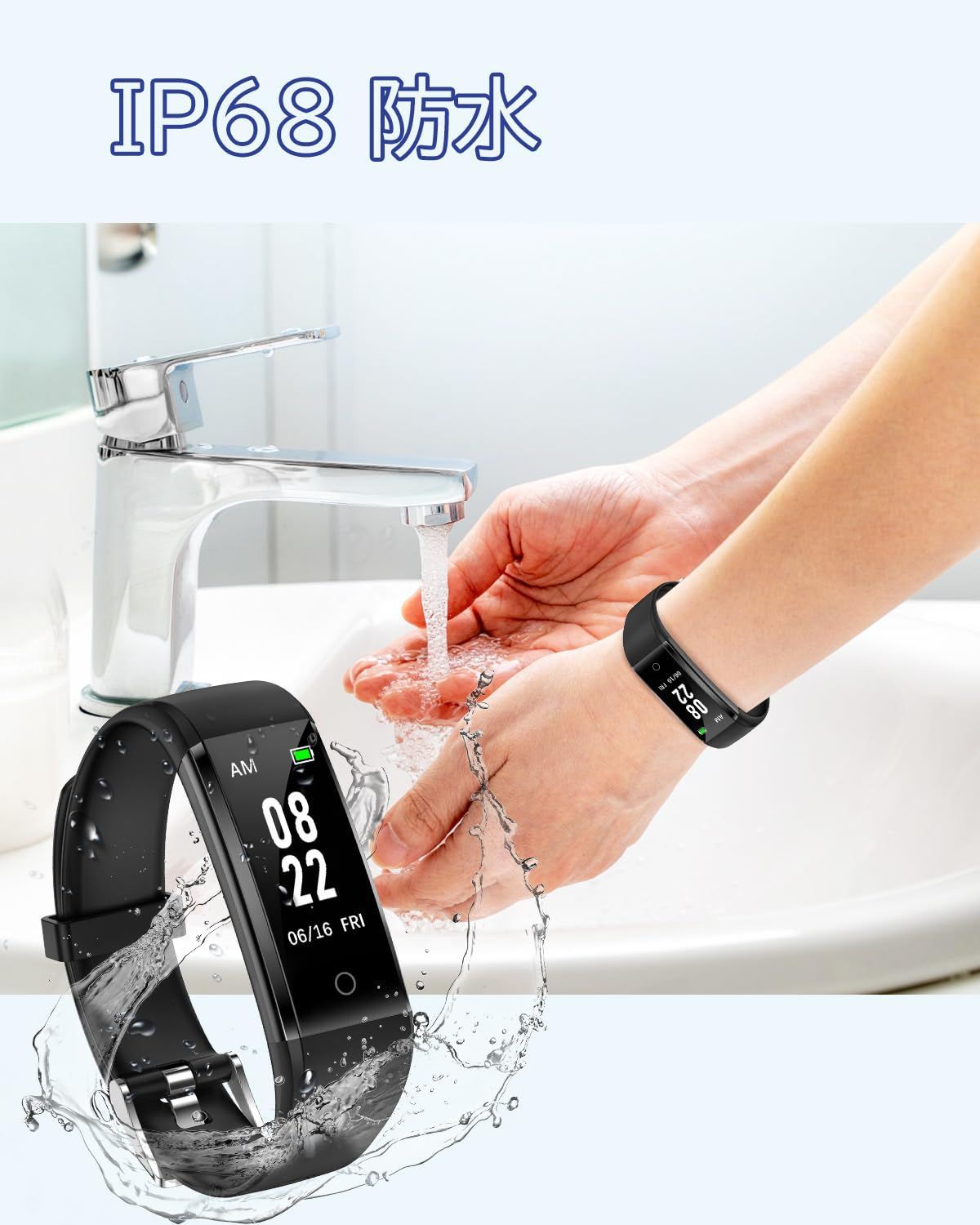 【機能紹介・IP67防水防塵】歩数、距離、時間を記録する。それは、シンプルで実用的なものです。IP67高レベル防水・防塵で、洗顔時や雨天時にも外す必要がありません。水泳にも使用できますが、お風呂や海での使用は避けてください。