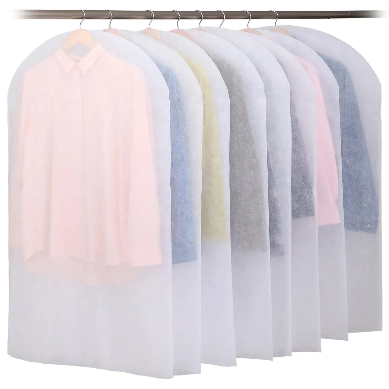 アストロ 衣類カバー ホワイト ショートサイズ 8枚組 衣装カバー スーツカバー 両面不織布 埃除けカバー オフシーズンの衣類をほこりから守る 下部開き仕様 被せるだけ 収納カバー 保管カバー 衣服 埃除け クローゼット 洋服同士の擦れによるダメージを防止 クリーニング後の衣類の保管に カット可能 605-07