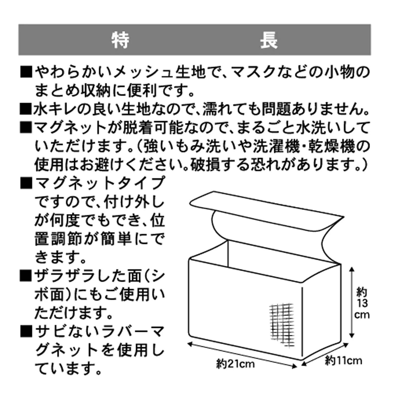 ●やわらかいメッシュ生地で、マスクなどの小物のまとめ収納に便利です