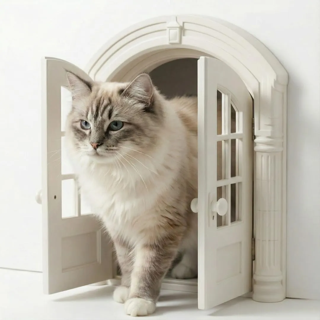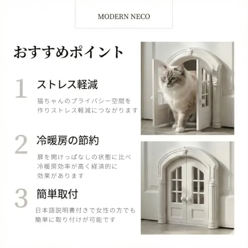 両開きの扉構造:猫ちゃんが自由に行き来できる安心設計です。