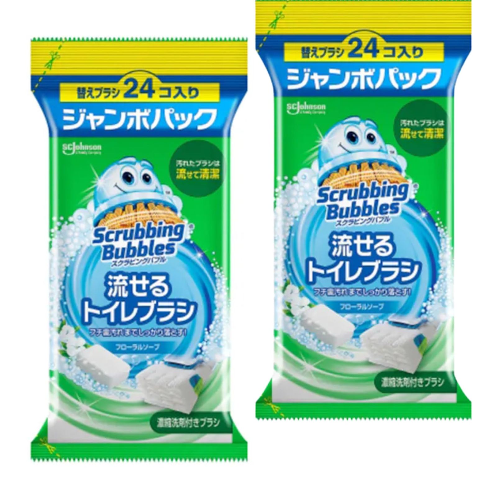スクラビンクバブル 流せるトイレブラシ 48個セット フローラルソープの香り 黒ズミ防止 使い捨て トイレ掃除 洗剤付き 買い詰め合わせt