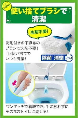 使い捨てで衛生的: 汚れたブラシがそのままトイレに流せて清潔、毎回新しいブラシで掃除可能